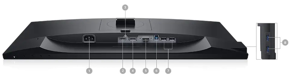 دکمههای فیزیکی مانیتور دل P2319H شامل پنج دکمه کنترلی است که در امتداد لبه سمت راست حاشیه پایین صفحه نمایش قرار دارند. دکمه سمت راست و جلوی مانیتور برای روشن/خاموش است، در حالی که بقیه به شما کمک میکنند تا در سیستم منوی مانیتور حرکت کنید. منوی اصلی به شما امکان تنظیم عملکردهایی مانند روشنایی و کنتراست، منبع ورودی، رنگ و نسبت ابعاد را میدهد. منوی دیگر مانیتور استوک Dell P2319H به شما دسترسی به حالتهای از پیش تعیین شده از جمله Standard ،ComfortView ،Cool ،Movie ،Game ،Warm و Custom Color را میدهد.
